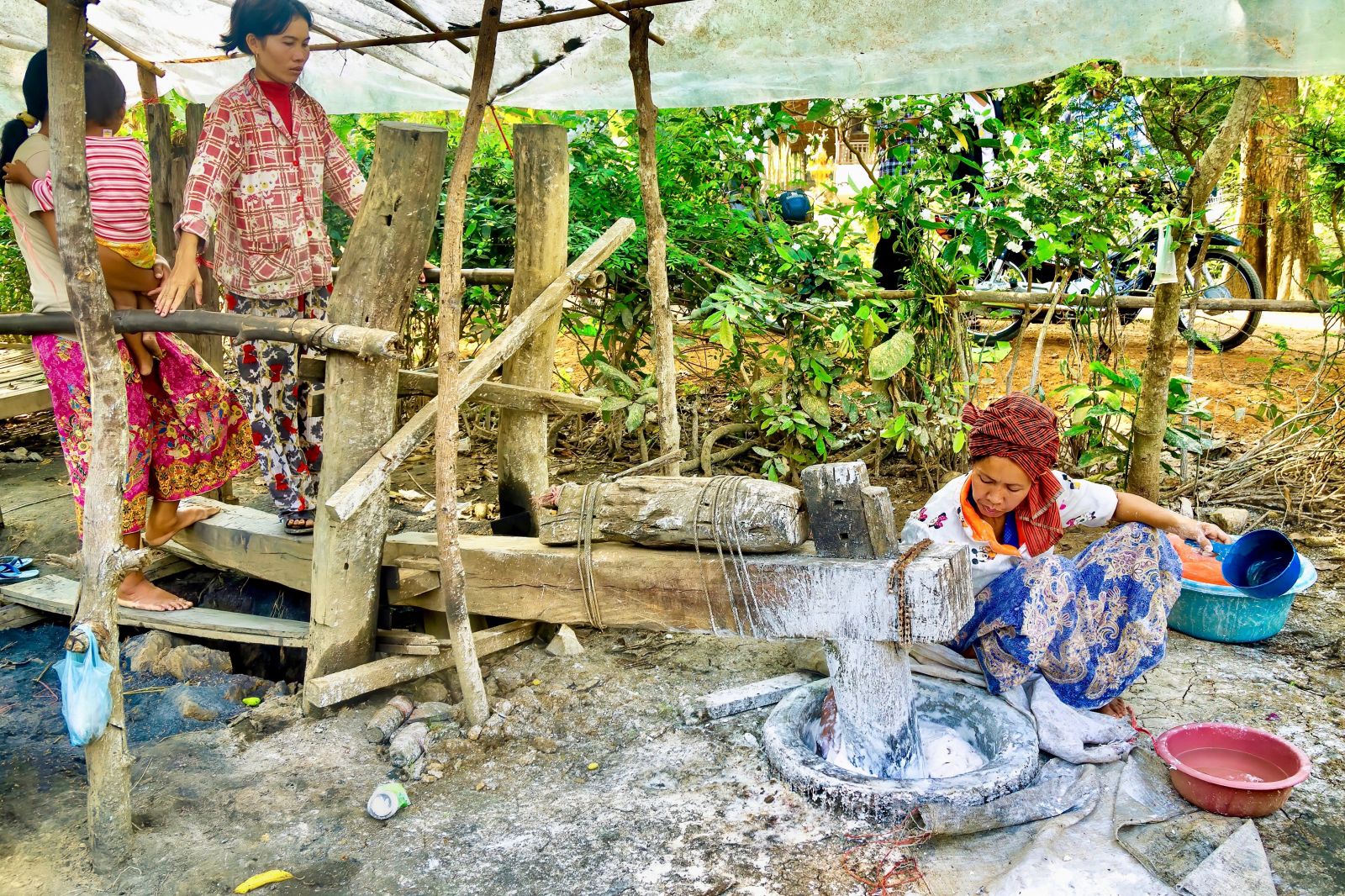 As we travel, we pass through small villages where everyday life unfolds—families producing rice paper, drying bananas, and preparing fermented fish paste using time-honored methods. Short visits to local workshops offer a glimpse into crafts and practices that continue to shape daily life in this region.